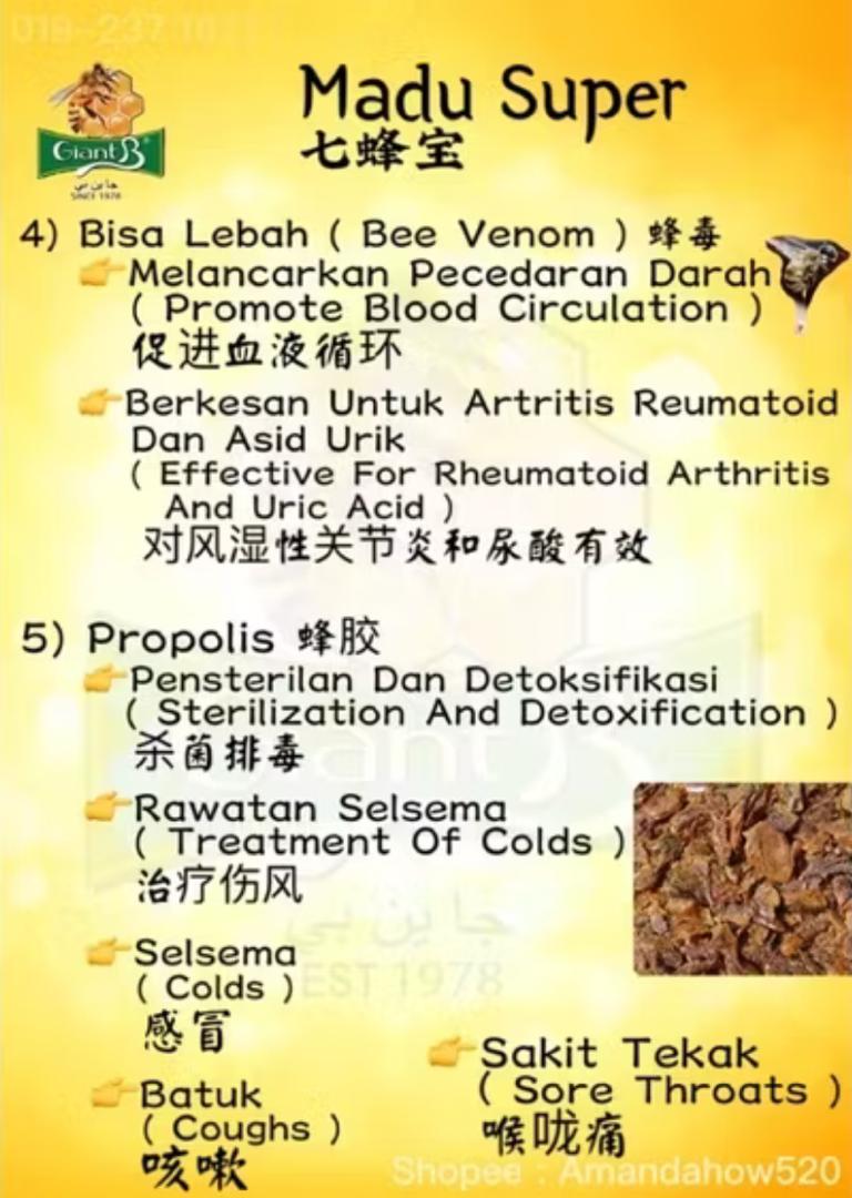 请勿使用金属器具或热水, 以免破坏蜂产品之天然活性成分。