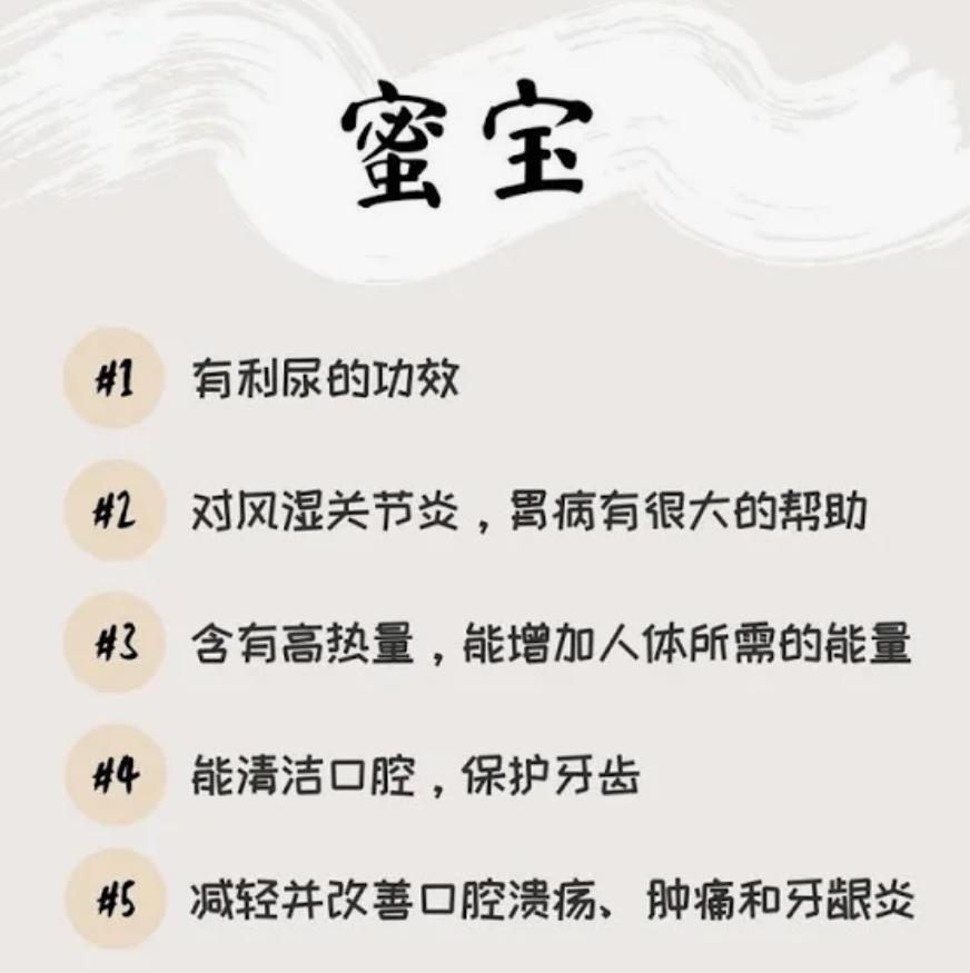 润燥滑肠, 缓解便秘: 蜂蜜味甘、性平和, 具有润燥滑肠的功效。