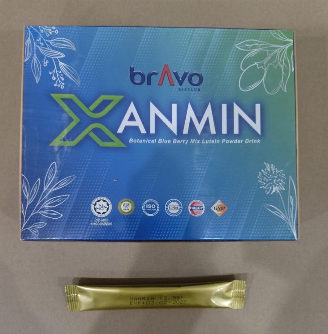 植物蓝莓混合叶黄素粉饮料 BRAVO BizClub XANMIN Botanical Blue Berry Mix Lutein Powder 3500mg x 30 Sachets (GEY-YY)